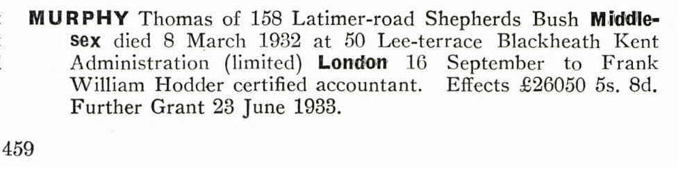 Murphy was born on 5th June 1892 in Paisley. His father, also called Thomas,
